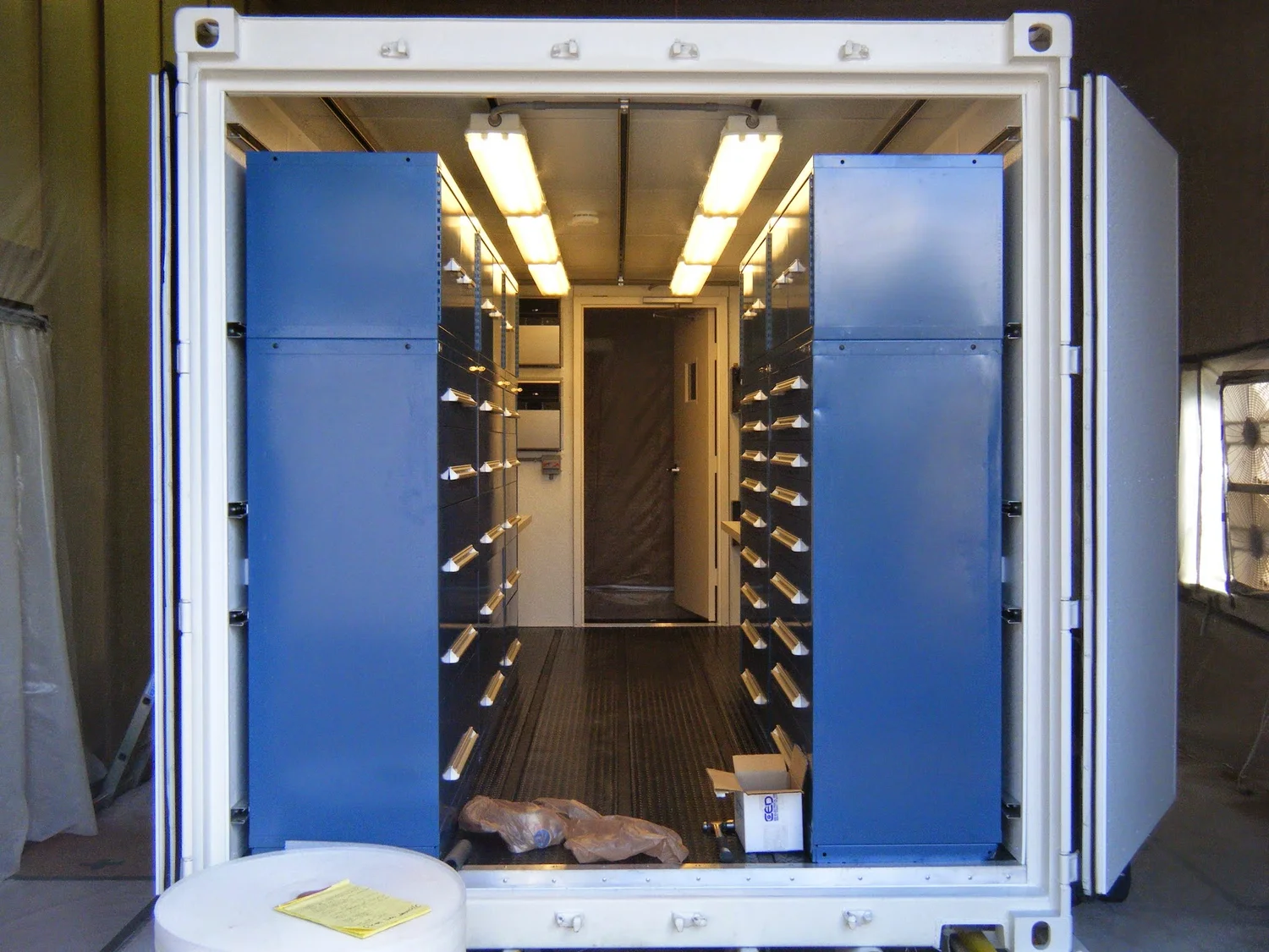 AMF2 General Purpose Container - Converted a 20-foot ISO shipping container into a mobile, general-purpose support container, including structural modifications, interior build-out, thermal insulation, electrical power distribution, grounding, and integration to support flexible field operations and equipment staging.